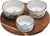 Serving Set Of 4Pcs, 3X Stoneware Bowls, Size: Dia 100Xh45Mm, 184 Gram / Dia 85Xh40Mm, 120 Gram, / Dia 70Xh30Mm, 102 Gram. On Acacia (Acacia Confusa) Tray, Size: Dia 220Xh12Mm, Weight: 204 Gram, Bowls In White Reactive Glaze Color With Herbs Design, With 3 Different Designs In Each Set, In Our Design Colorbox