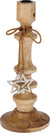 Candle Holder, Mango Wood (Mangifera Indica) And Aluminium Material, Size: 12X12X30Cm, Weight: 340 Gram, Natural Wood Colour With Two Silver Stars Hanging On The Candle Holder, With Hangtag, Packed In Paper